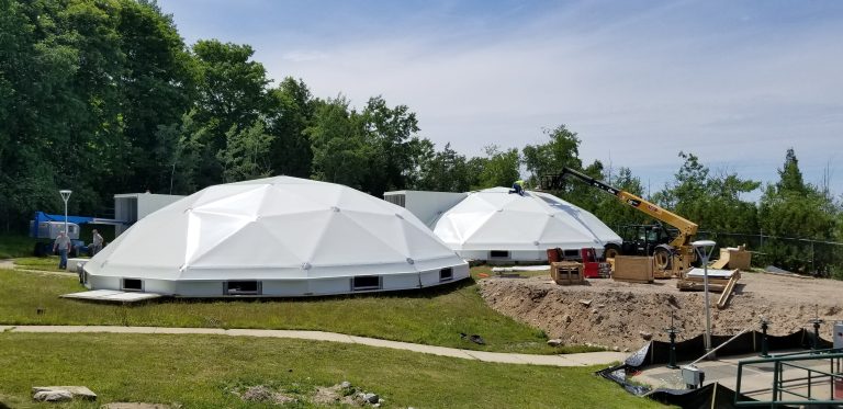 The City of Petoskey has completed a project covering two 50′ primary and three 50′ final clarifiers with CST aluminum domes. Petoskey and their Engineer (Hubbell, Roth and Clark) worked with Hamlett/CST to first decide what type of covering system would best meet their needs. CST’s flat and domed aluminum covers were evaluated and domes were their choice. The city had several project objectives: Odor control, eliminate waterfowl/bird access, overall functionality, minimize maintenance and overall appearance. All objectives were met by CST Covers. Click here to visit CST’s website.